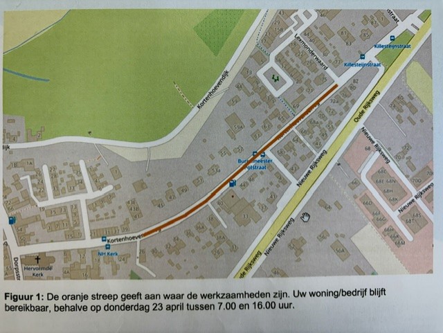 De gemeente heeft aangekondigd dat er van 22 t/m 24 april 2026 groot onderhoud plaatsvindt aan de Kortenhoevenseweg.